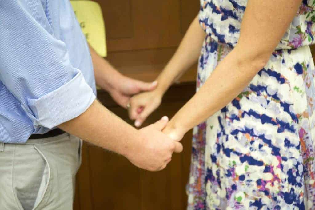 Our first kiss as husband and wife was met by applause and cheers from our friends and my colleagues in the Public Defender’s office and a smattering of friends who had been able to change their travel plans at the last minute. Our families watched the action live on Facebook in a gas station parking lot somewhere between Raleigh and Charlotte.