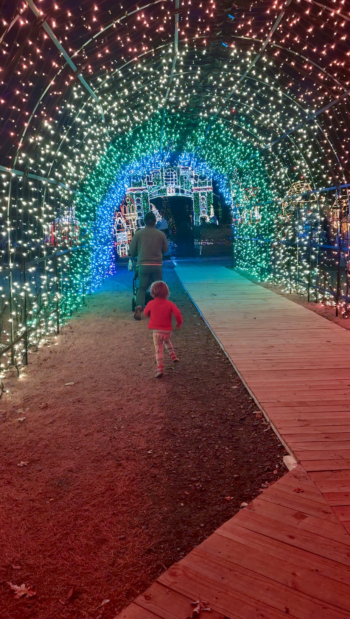 One of Charlotte’s newer holiday events, this walk-through light experience has massive glowing tunnels, food trucks, and photo ops galore. It’s stroller-friendly and perfect for little ones who love to run; we’ve gone the past three years with our toddlers!