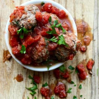 We tried three of Megan’s recipes for dinner this week, and all of them were a success. I love the simplicity of her recipes (I threw pork in the crockpot before work Wednesday morning with her homemade barbecue sauce and when I came home, we had a pulled pork feast ready for dinner),  paired with an emphasis on fresh ingredients and lots of flavor. While the three recipes we tried were all great (buffalo chicken legs with Paleo homemade ranch, pulled pork with homemade barbecue sauce and sautéed kale, and paleo meatballs), I haven’t been able to stop thinking about the Paleo meatballs we ate on Tuesday night all week. I loved the strong Italian influence of these juicy Paleo meatballs (I can’t say no to anything with garlic, onion, and oregano) and I also loved that they didn’t fall apart in my cast iron skillet, even without any breadcrumbs (seriously, you don’t need breadcrumbs as a binding agent and it’s great). We ate these with a simple tomato sauce that I simmered on the stove and a side salad, but they would also be excellent atop a pile of zucchini noodles (I’m going to try them next time how Megan recommends them, on top of some roasted Brussels sprouts!).