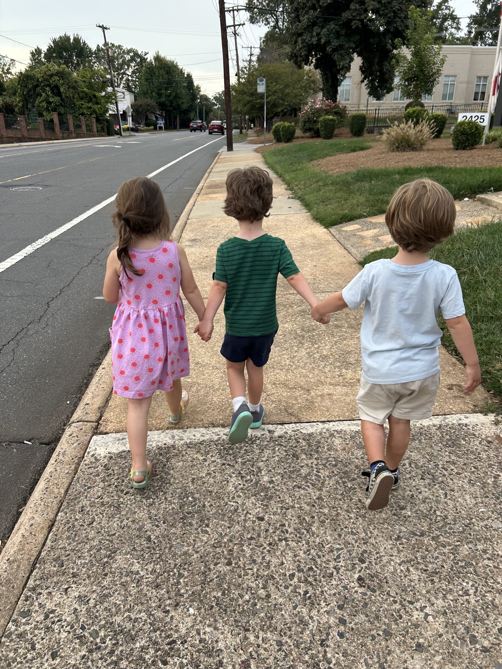 Pictured above are my little ones and I exploring The Bowl at Ballantyne, which is on the newer side (opened in 2024). We love the Stream Park with its Hillside slides, hammocks, and other fun playground equipment. We also adore that the park is walkable distance to kid-friendly food like Harriet’s Hamburgers and Honeysuckle Gelato. (Pro tip: grab a pre-playground iced latte at Fly Kid Fly.)