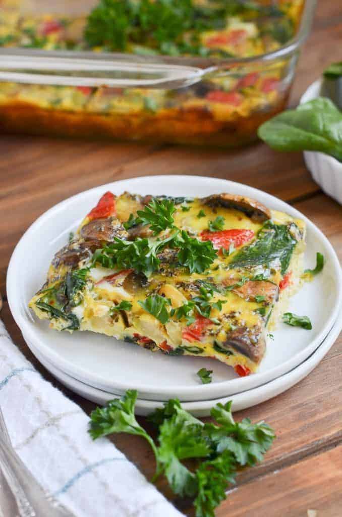 This casserole is a perfect way to meal prep breakfast for the entire week by using up whatever ingredients, especially vegetables, you have in the fridge. Omit any cheese or potatoes in order to make it Whole30 compliant.
